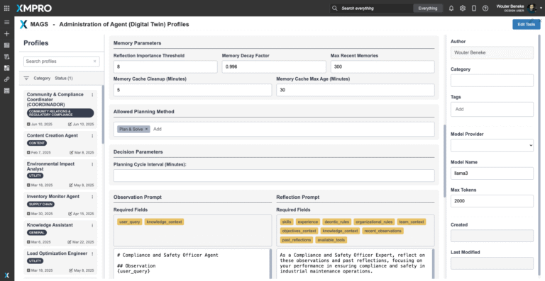 Building on XMPro’s ability to monitor real-time operations, enforce conditional safety logic, and flag non-compliance, the Compliance & Safety Officer Agent adds agentic decision intelligence to automate enforcement. Operating within XMPro’s bounded autonomy framework, it continuously assesses behavior against standards and regulations, flags emerging risks, and collaborates with humans and other agents to maintain compliance, mitigate risk, and protect the workforce at the speed of operations.