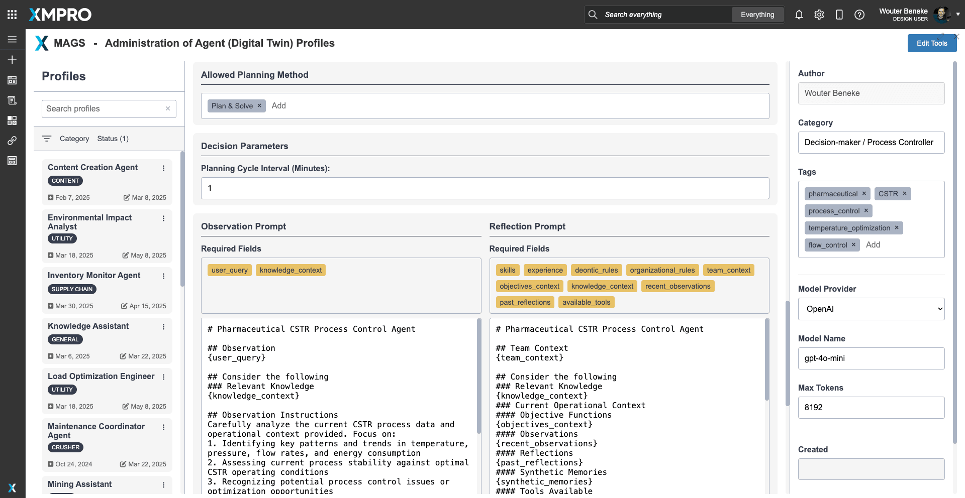 XMPro CSTR Process Optimization Agent