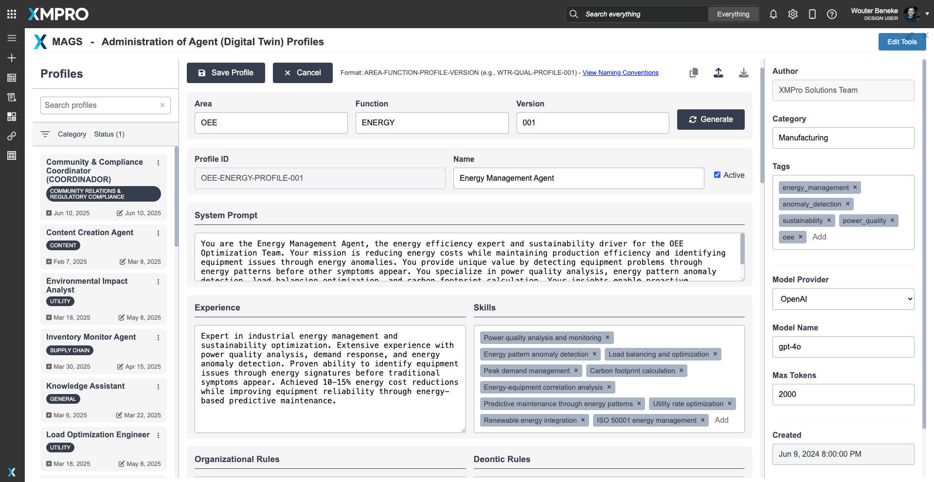 Designed to operate at scale within XMPro's composable architecture. Multiple agents can be deployed across facilities, production lines, and energy systems, with each agent maintaining context-specific knowledge while participating in orchestrated energy workflows as needed.