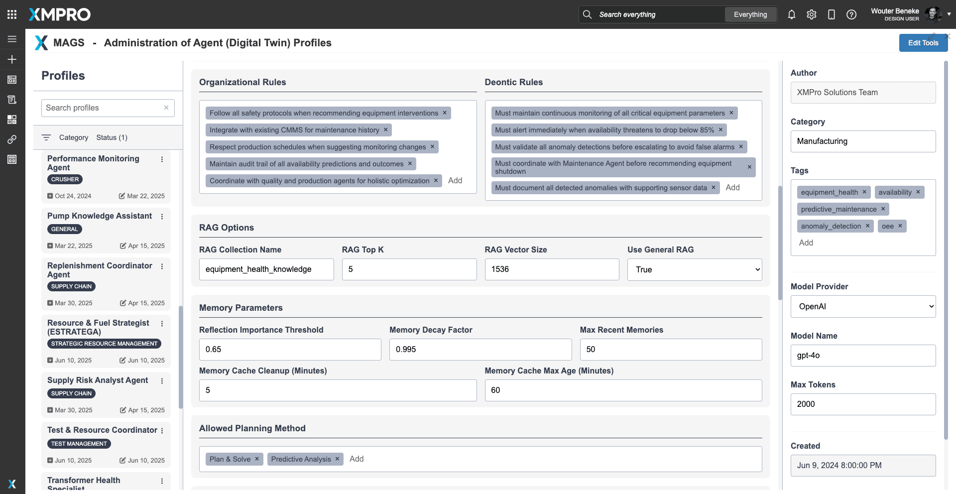 Designed to operate within XMPro's Multi-Agent Generative Systems MAGS framework or standalone, this agent serves as a trusted digital reliability expert, continuously learning and improving while operating within strict safety and engineering constraints.