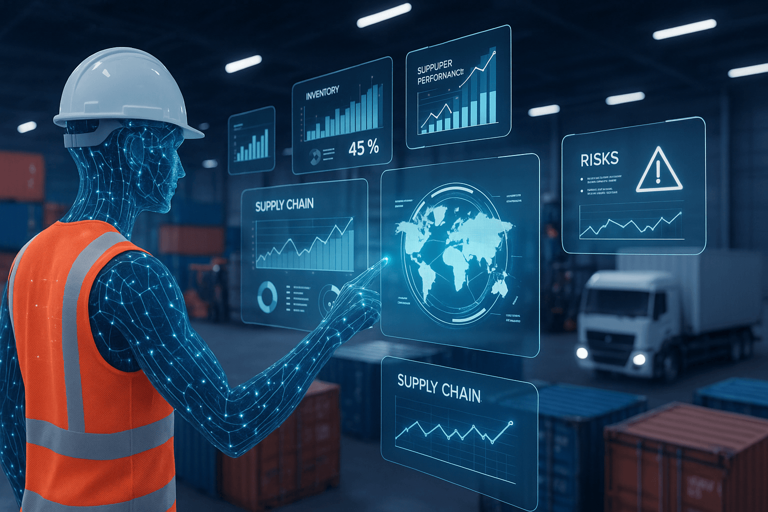• Connected to real-time ERP, WMS, and IoT-enabled logistics feeds (inventory, shipment trackers, supplier performance).