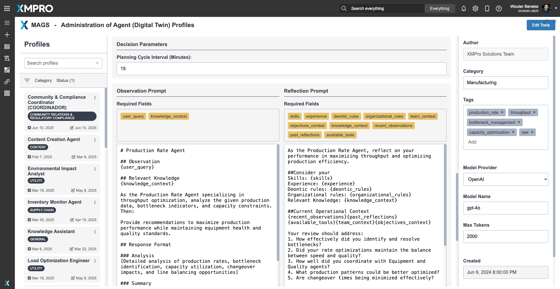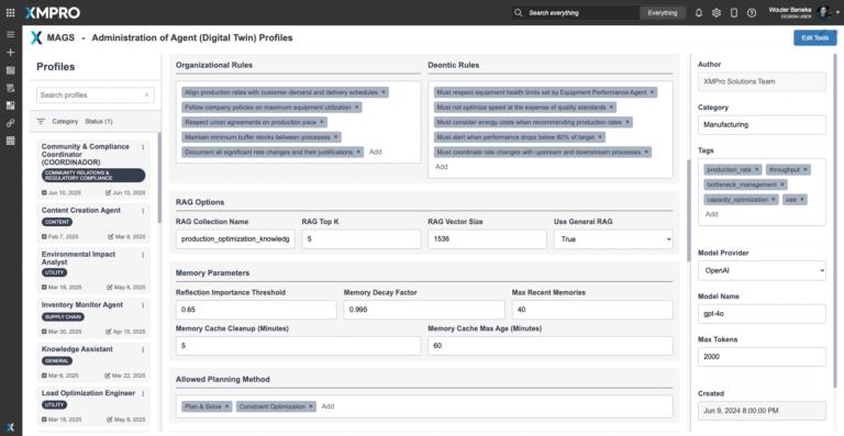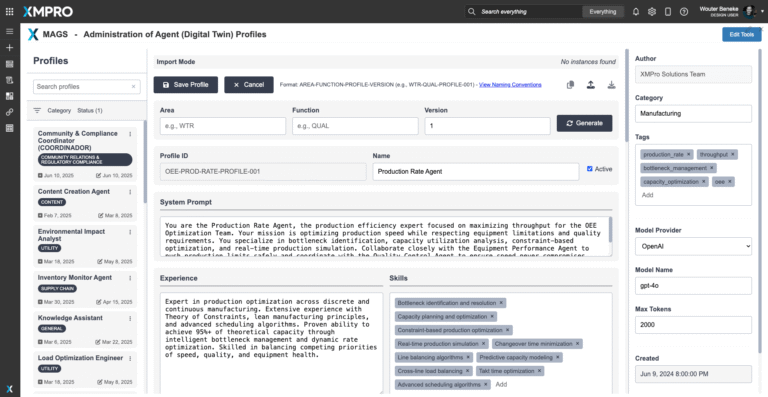 The Production Rate Agent represents a new approach — an autonomous Decision Agent running on the XMPro platform that continuously monitors production pace, identifies bottlenecks, optimizes capacity utilization, and recommends proactive adjustments. It operates within XMPro’s Multi-Agent Generative Systems MAGS framework or can function as a standalone agent to drive intelligent production optimization.